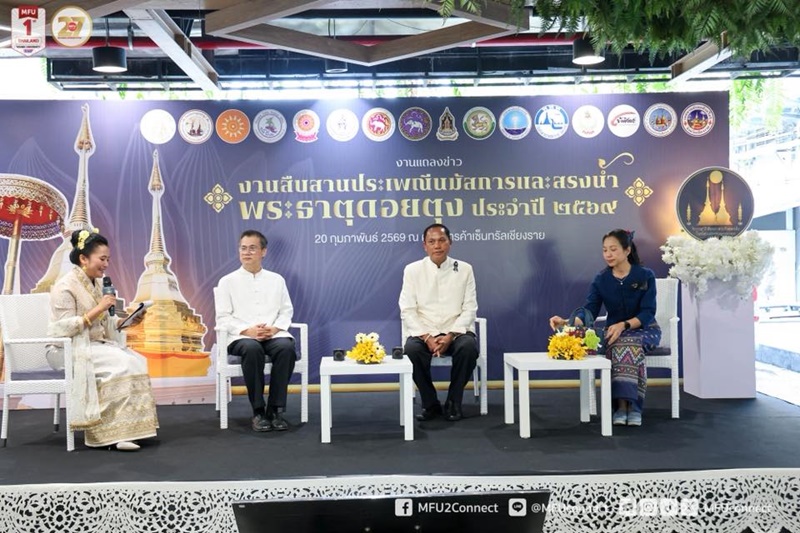 ส่วนประชาสัมพันธ์มหาวิทยาลัยแม่ฟ้าหลวง ร่วมงานแถลงข่าวจัดขึ้นโดยจังหวัดเชียงรายเพื่อเปิดตัวงาน "สืบสานประเพณีนมัสการและสรงน้ำพระธาตุดอยตุง ประจำปี 2569" ภายใต้ธีม "2008 ปีสืบมา หกเป็งล่องฟ้า ไหว้สาพระธาตุดอยตุง" โดยมีกำหนดจัดงานระหว่างวันที่ 2-3 มีนาคม 2569 ณ วัดพระธาตุดอยตุง ตำบลห้วยไคร้ อำเภอแม่สาย จังหวัดเชียงราย