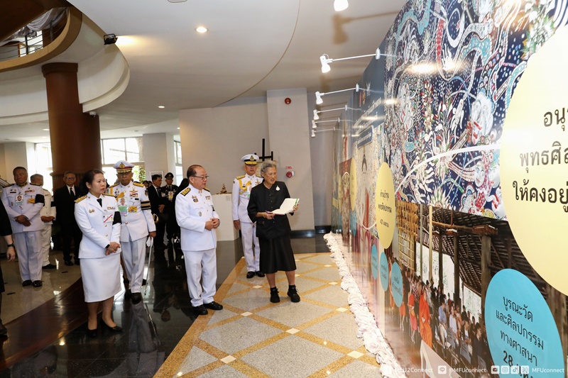 On Thursday, March 12, 2026, following the Royal Commencement Ceremony, Her Royal Highness Princess Maha Chakri Sirindhorn graciously viewed an exhibition of Buddhist artworks and community enterprise (OTOP) products at the Vanchai Sirichana Building, Mae Fah Luang University, Chiang Rai Province. .