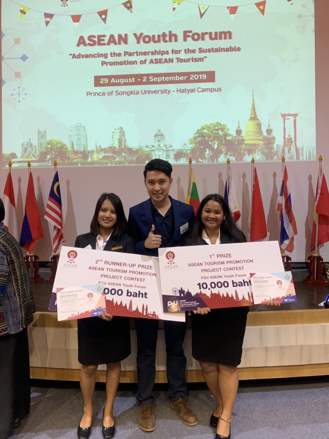 มหาวิทยาลัยแม่ฟ้าหลวง (มฟล.) ขอแสดงความยินดีกับนางสาวชญานิศ บุญภักดี และนางสาวนพิษฐา มากเจริญ นักศึกษาสาขาวิชาการจัดการท่องเที่ยว สำนักวิชาการจัดการ ที่ได้รับรางวัลรางวัลชนะเลิศ และรองชนะเลิศอันดับ 2 ตามลำดับจากการแข่งขันโครงงานส่งเสริมการท่องเที่ยวอาเซียน (Project Development) ภายใต้โครงการ ASEAN Youth Forum: Advancing the Partnerships for the Sustainable Promotion of ASEAN Tourism ณ มหาวิทยาลัยสงขลานครินทร์ วิทยาเขตหาดใหญ่ ในระหว่างวันที่ 29 สิงหาคม – 2 กันยายน 2562 ที่ผ่านมา โดยมีอาจารย์ธีรพันธ์ ทัศนิยม อาจารย์ประจำสำนักวิชาการจัดการเป็นที่ปรึกษา