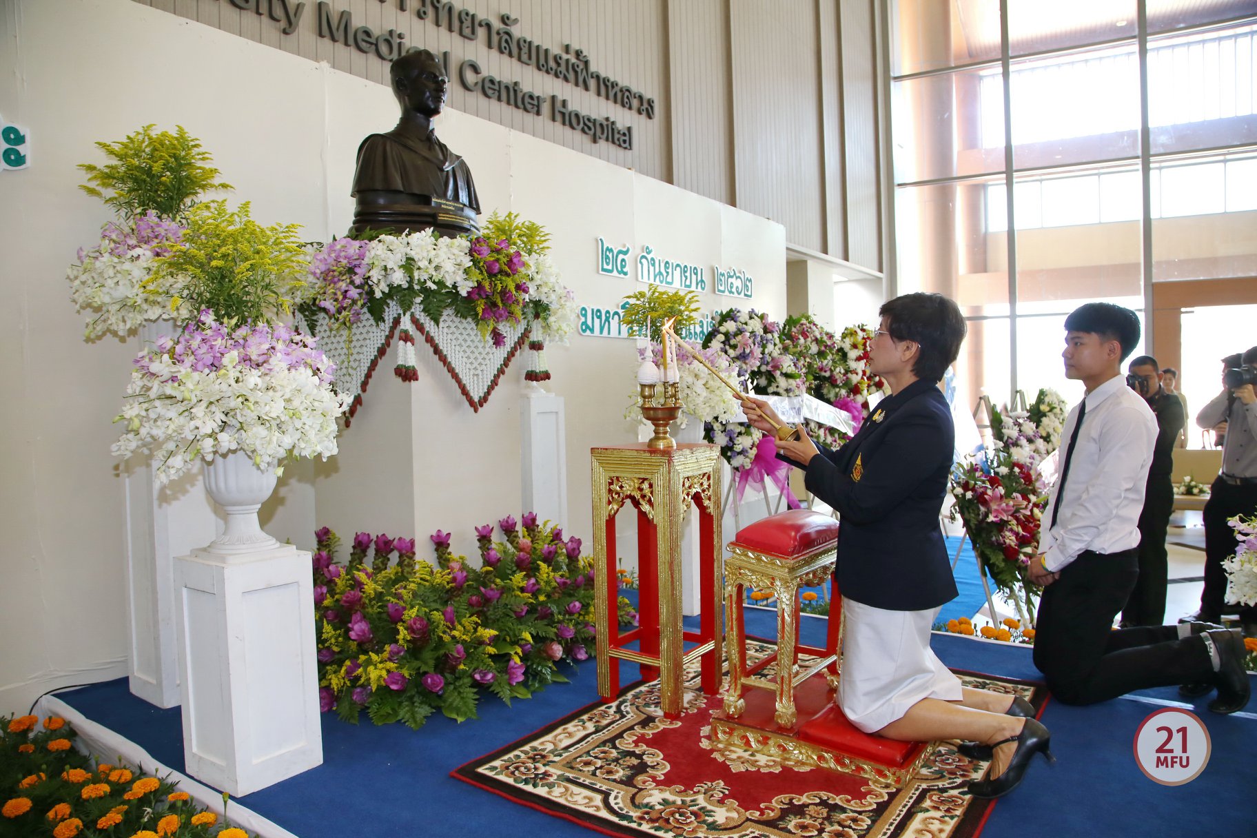 เมื่อวันที่ 24 กันยายน 2562 รองศาสตราจารย์ ดร.ชยาพร วัฒนศิริ อธิการบดีมหาวิทยาลัยแม่ฟ้าหลวง (มฟล.) เป็นประธานในพิธีวางพวงมาลาถวายสักการะเนื่องในวันมหิดล ประจำปี 2562 โดยได้รับเกียรติจากหน่วยงานส่วนราชการ ศาล ทหาร ตำรวจ แพทย์ พยาบาล เข้าร่วมพิธีจำนวนมาก ณ ห้องโถงอเนกประสงค์ โรงพยาบาลศูนย์การแพทย์มหาวิทยาลัยแม่ฟ้าหลวง ซึ่งวันที่ 24 กันยายน เป็นวันคล้ายวันสวรรคตของสมเด็จพระมหิตลาธิเบศร อดุลยเดชวิกรม พระบรมราชชนก พระผู้ได้รับการถวายพระสมัญญาภิไธยจากแพทย์และประชาชนทั่วไปว่า “พระบิดาแห่งการแพทย์แผนปัจจุบันของไทย”