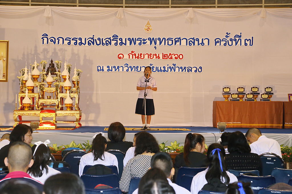 มหาวิทยาลัยแม่ฟ้าหลวง (มฟล.) จัด กิจกรรมส่งเสริมพระพุทธศาสนา ครั้งที่ 7 เมื่อวันศุกร์ที่ 1 กันยายน 2560 ณ อาคารเฉลิมพระเกียรติ 72 พรรษา บรมราชินีนาถ โดยมีวัตถุประสงค์เพื่อสืบสานแนวทางอันดีงามของพระพุทธศาสนา และน้อมถวายเป็นพระราชกุศลแด่สมเด็จพระนางเจ้าสิริกิติ์ พระบรมราชินีนาถในพระบาทสมเด็จพระปรมินทรมหาภูมิพลอดุลยเดช ซึ่งมีสถานศึกษาในเขตพื้นที่การศึกษาภาคเหนือและทั่วประเทศ ส่งนักเรียนนักศึกษาเข้าร่วมกิจกรรมจำนวนมาก ทั้งในระดับประถมศึกษา มัธยมศึกษาตอนต้น มัธยมศึกษาตอนปลาย และระดับอุดมศึกษา โดยมีกิจกรรหลากหลายภายในงาน ไม่ว่าจะเป็น นิทรรศการส่งเสริมพระพุทธศาสนาจากหน่วยงานต่างๆ นิทรรศการพระราชวงศ์ไทยกับพระพุทธศาสนา นิทรรศการเทิดพระเกียรติพระบาทสมเด็จพระเจ้าอยู่หัวรัชกาลที่ 9 “ร้อยเรียงภาพ เล่าเรื่องพ่อ” การแข่งขันตอบคำถามธรรมะ การประกวดสุนทรพจน์ หัวข้อ “พอเพียง..ตามรอยพ่อ” และการตอบคำถามแฟนพันธุ์แท้พุทธประวัติ
