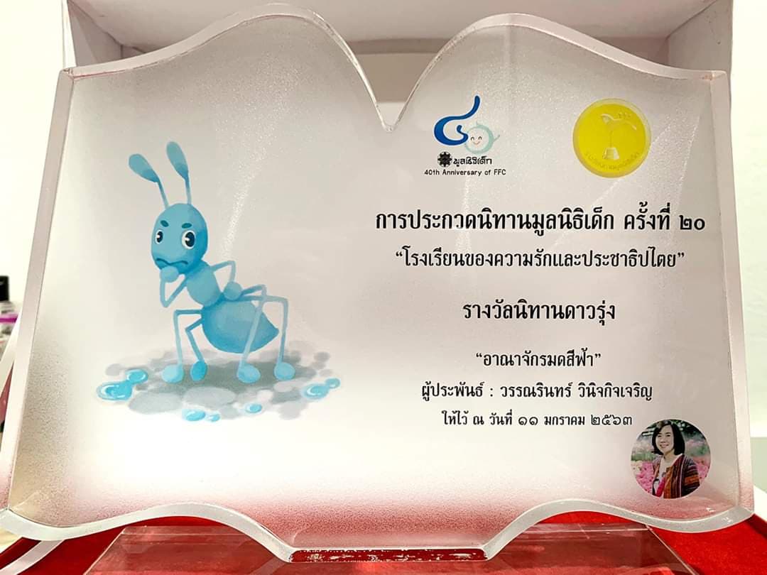 ขอแสดงความยินดีกับ อาจารย์วรรณรินทร์ วินิจกิจเจริญ อาจารย์ประจำสำนักวิชาศิลปศาสตร์ มหาวิทยาลัยแม่ฟ้าหลวง ที่ได้รับรางวัลดาวรุ่ง จากการประกวดนิทาน ที่จัดโดยมูลนิธิเด็ก ครั้งที่ 20 และปีนี้พิเศษในโอกาสมูลนิธิเด็กครบรอบ 40 ปี พิธีมอบรางวัลจัดขึ้นแล้วที่ หอศิลป์กรุงเทพมหานคร เมื่อวันที่ 11 มกราคม 2563 โดยการประกวดมีผู้ได้รับรางวัลชนะเลิศ 1 รางวัล และรางวัลดาวรุ่ง 7 รางวัล หนึ่งในจำนวนนั้นเป็นของอาจารย์วรรณรินทร์ ได้รับด้วยการแต่งนิทานสำหรับเด็กประถมเรื่อง ‘อาณาจักรมดสีฟ้า’ ซึ่งมีความยาว 2 หน้ากระดาษ A4 คัดเลือกจาก 300 เรื่องที่มีผู้ส่งเข้าประกวดจากทั่วประเทศ