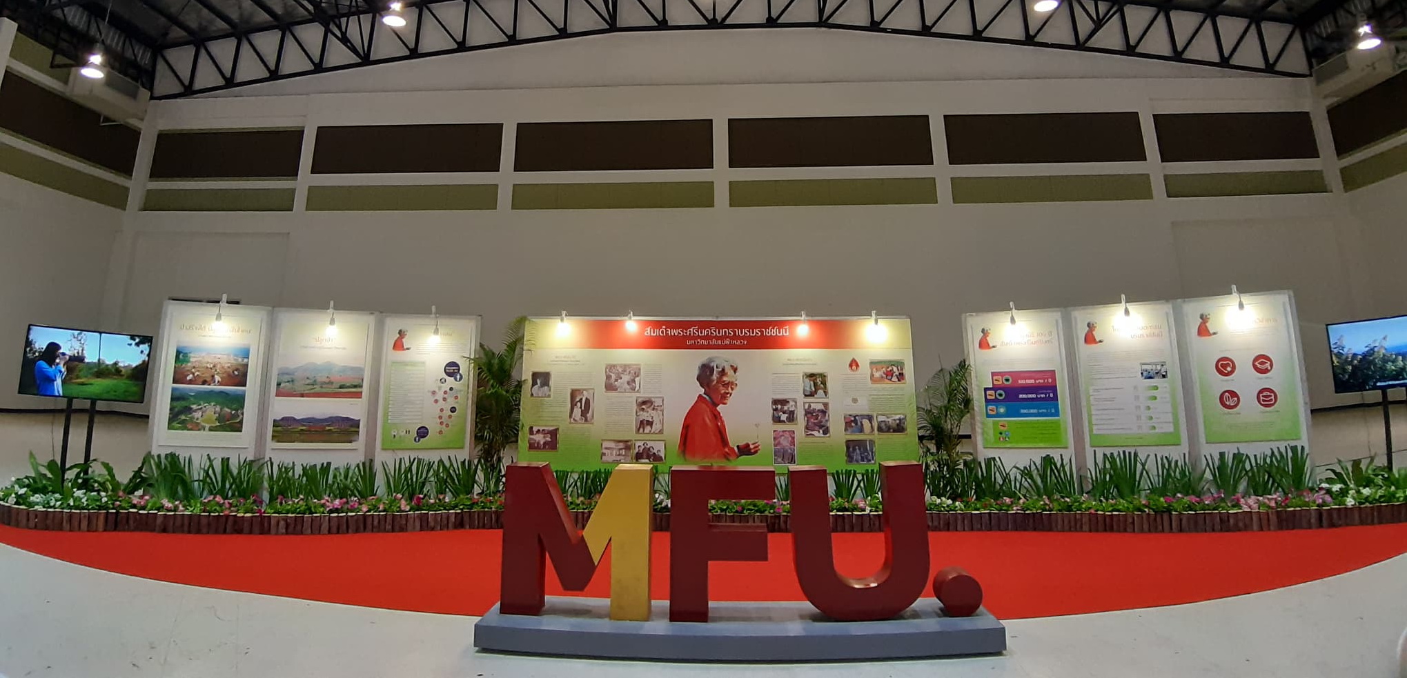 ทั้งนี้ มหาวิทยาลัยแม่ฟ้าหลวงได้จัดแสดงนิทรรศการน้อมรำลึกในพระมหากรุณาธิคุณ สมเด็จพระศรีนครินทราบรมราชชนนี ประกอบด้วยส่วนแสดงพระราชประวัติ พระราชกรณียกิจ หน่วยงานต่างๆ ที่ทรงจัดตั้งขึ้น รวมถึงความมุ่งมั่นที่จะนำพระราชปณิธาน “ปลูกป่า สร้างคน” ของพระองค์ท่านมาเป็นหลักยึดมั่นในการดำเนินงานของมหาวิทยาลัยแม่ฟ้าหลวง การจัดตั้งมูลนิธิ 100 ปี สมเด็จพระศรีนครินทร์ โครงการทันตกรรมบรมราชชนนี และการบริการวิชาการของมหาวิทยาลัยแม่ฟ้าหลวง โดยมีนางสาวพรพิสุทธิ์ ฤศุภร รักษาการแทนหัวหน้าฝ่ายประชาสัมพันธ์และแนะแนวหลักสูตร ส่วนประชาสัมพันธ์ มหาวิทยาลัยแม่ฟ้าหลวง ให้ข้อมูลแก่ผู้เข้าชมนิทรรศการ ซึ่งได้รับความสนใจจากผู้เข้าร่วมพิธีเข้าชมเป็นจำนวนมาก
