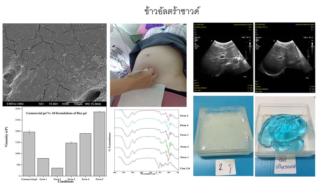 รายละเอียดผลงาน: เป็นเจลทางการแพทย์ สำหรับใช้เป็นตัวกลางส่งผ่านคลื่นเสียงความถี่สูงของคลื่นอัลตร้าซาวด์ เพื่อตรวจวิเคราะห์อวัยวะภายในร่างกายผู้ป่วย โดยเจลทำหน้าที่เป็นสารหล่อลื่นระหว่างหัวตรวจที่โค้งมนของเครื่องอัลตราซาวด์กับผิวหนังของผู้ป่วย