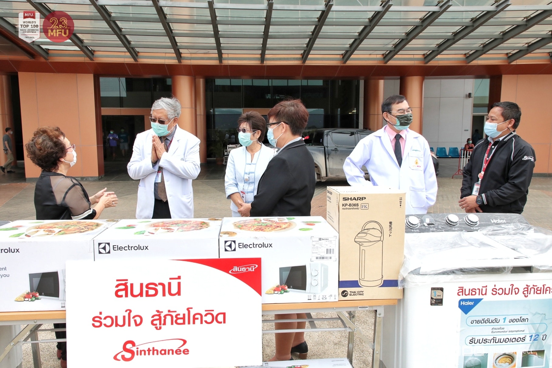 เมื่อวันที่ 27 เมษายน 2564 ศาสตราจารย์เกียรติคุณ นพ.ศุภกร โรจนนินทร์ รักษาการแทน ผู้อำนวยการ โรงพยาบาลศูนย์การแพทย์ มฟล. พร้อมคณะผู้บริหารโรงพยาบาลฯ รับมอบเครื่องใช้ไฟฟ้าจาก บริษัท สินธานี อิเล็คทรอนิกค์ จำกัด เพื่อสนับสนุนการดำเนินงานทางการแพทย์ของโรงพยาบาลศูนย์การแพทย์ มฟล. และช่วยเหลือผู้ได้รับผลกระทบจากโควิด-19 ในส่วนของโรงพยาบาลสนาม-หอผู้ป่วยรวม (COHORT WARD)
