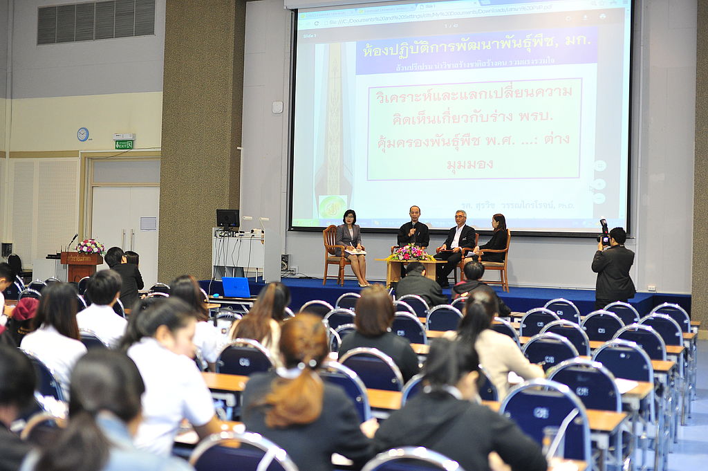 โดยในวงเสวนาได้มุ่งอธิบายถึงที่มาของร่างกฎหมายฉบับดังกล่าวที่มีการขยายความคุ้มครองพันธ์พืชในระดับที่อาจส่งผลกระทบต่อนักปรับปรุงสายพันธ์พืช เกษตรกรรายใหญ่ รายย่อย และโดยเฉพาะผู้บริโภค ในหลายแง่มุม ไม่ว่าจะเป็นราคาผลผลิตทางการเกษตรที่ต้องปรับราคาสูงจากต้นทุนการผลิตที่เป็นไปได้ว่าเกษตรกรต้องซื้อเมล็ดพันธุ์ใหม่เพาะปลูกเพื่อการค้าทุกครั้งอาจไม่สามารถเก็บหรือเพาะเมล็ดพันธุ์เพื่อการเพาะปลูกในครั้งต่อไปหรือการนำผลิตผลทางการเกษตรนั้นแปรรูปเป็นผลิตภัณฑ์ว่าสามารถทำได้อย่างไรบ้าง นอกจากนี้ยังได้ถกกันถึงประเด็นนิยามพันธ์พืชพื้นเมือง พืชป่า เนื่องจากร่าง พ.ร.บ.ใหม่นั้นพูดถึงความคุ้มครองที่มีต่อพันธ์พืชใหม่ ตลอดจนมีการปรับระยะเวลาคุ้มครองพันธุ์พืชกลุ่มต่างๆในระยะเวลาที่นานมากขึ้น
